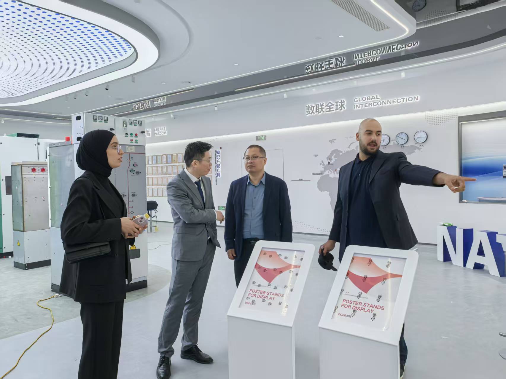 在参访过程中,我院留学生实地参观了纳图电气集团智能产研基地,深入了解了公司的发展历程、主要产品、业务布局与人才需求。蒋詹向企业介绍了学校和学院的办学情况,以及来华留学生生源情况。校企双方重点围绕留学生实习实践、协同合作育人等工作展开了细致交流。