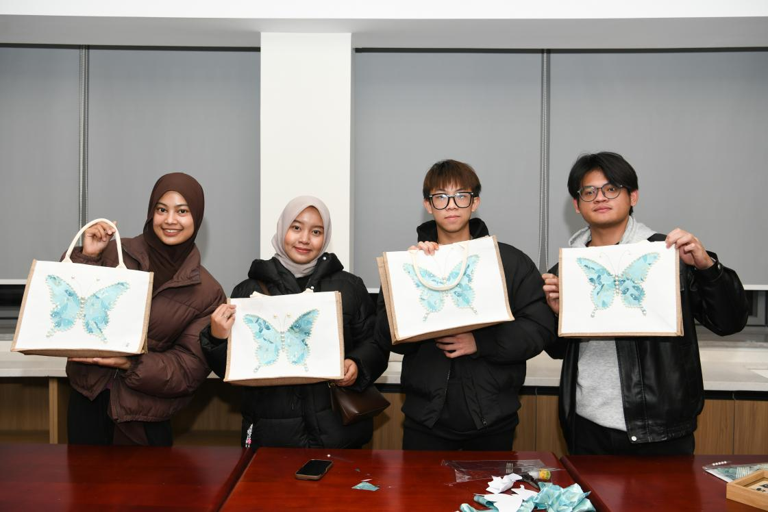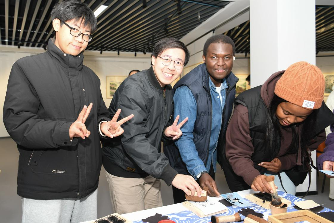 活动过程中,留学生们漫步“诗国常州”书画展展区,对常州“诗国”的历史渊源、书画作品中的地域文化特质与人文精神有了深度理解,在沉浸式赏析中感受了常州文化的深厚底蕴与独特魅力,透过笔墨丹青了解了书画展背后的创作故事与人文情怀。在活字印刷体验环节,留学生们亲手触摸了千年活字模块,在老师指导下现场挑选农历马年主题词汇,通过组合排版、拓印、晾干、裱框等工序,留下了承载中国传统文化记忆的专属纪念。在非遗宋锦包DIY环节,留学生们穿针引线,将传统的宋锦面料与现代设计理念相结合,亲手制作了兼具实用性与文化性的宋锦包,在一针一线中体悟了非遗技艺的温度,提升了动手能力与审美情趣。
