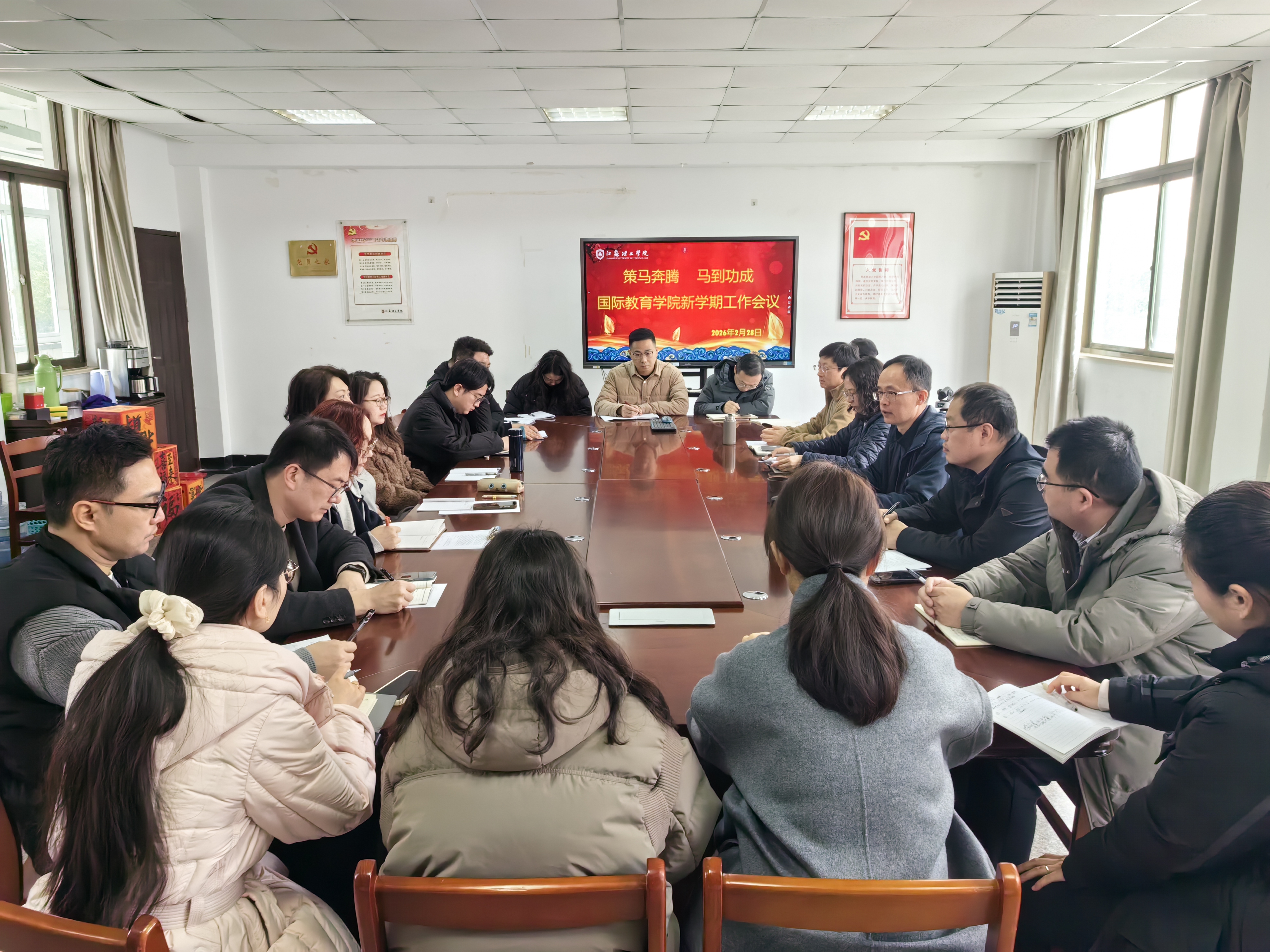 为确保新学期各项工作有序高效推进,2月28日下午,国际教育学院、国际合作与交流处在国教楼201会议室召开全体教职工大会,总结部门2025年及寒假期间工作,安排部署新学期工作任务,会议由党委书记吴玉峰主持。